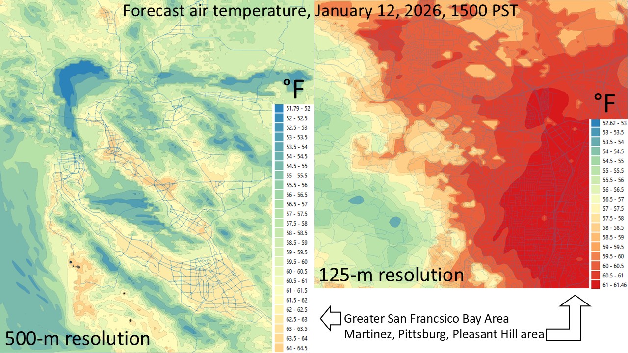 Greater San Francisco Bay Area forecast: 500 m -- 125 m -- 50 m resolutions