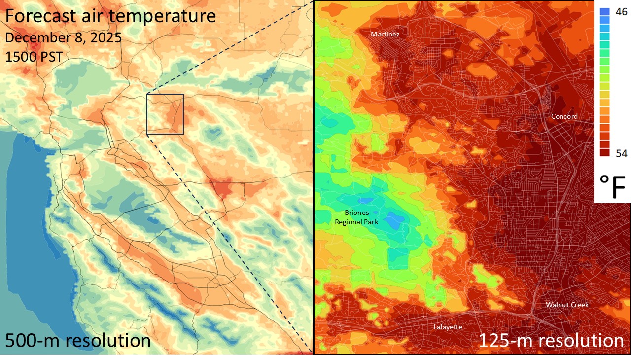 Greater San Francisco Bay Area forecast: 500 m -- 125 m -- 50 m resolutions