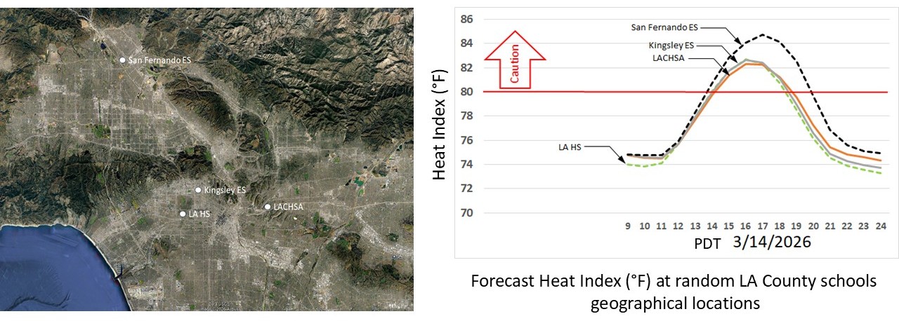 Southern California and San Francisco Bay Area forecasts, Heat Index, and UHI Index down to hyper-high resolutions of 25 m
